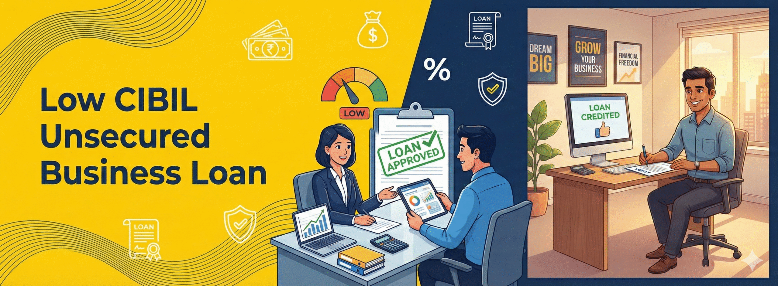 A Credit score is a three-digit number that reflects your creditworthiness based on your credit history. Typically, this score ranges from 300 to 900, with higher scores indicating better creditworthiness. A low CIBIL score, generally considered below 650, signals poor credit management or past financial difficulties. This can make it challenging to secure loans or credit cards and often results in higher interest rates or stricter terms if credit is granted. Low credit score business loans that is below a specific level and indicates a higher likelihood of defaulting on financial commitments is referred to as having a low CIBIL score. One of the top credit bureaus in India is CIBIL (Credit Information Bureau (India) Limited), which evaluates a person’s creditworthiness using their financial behavior and credit history.