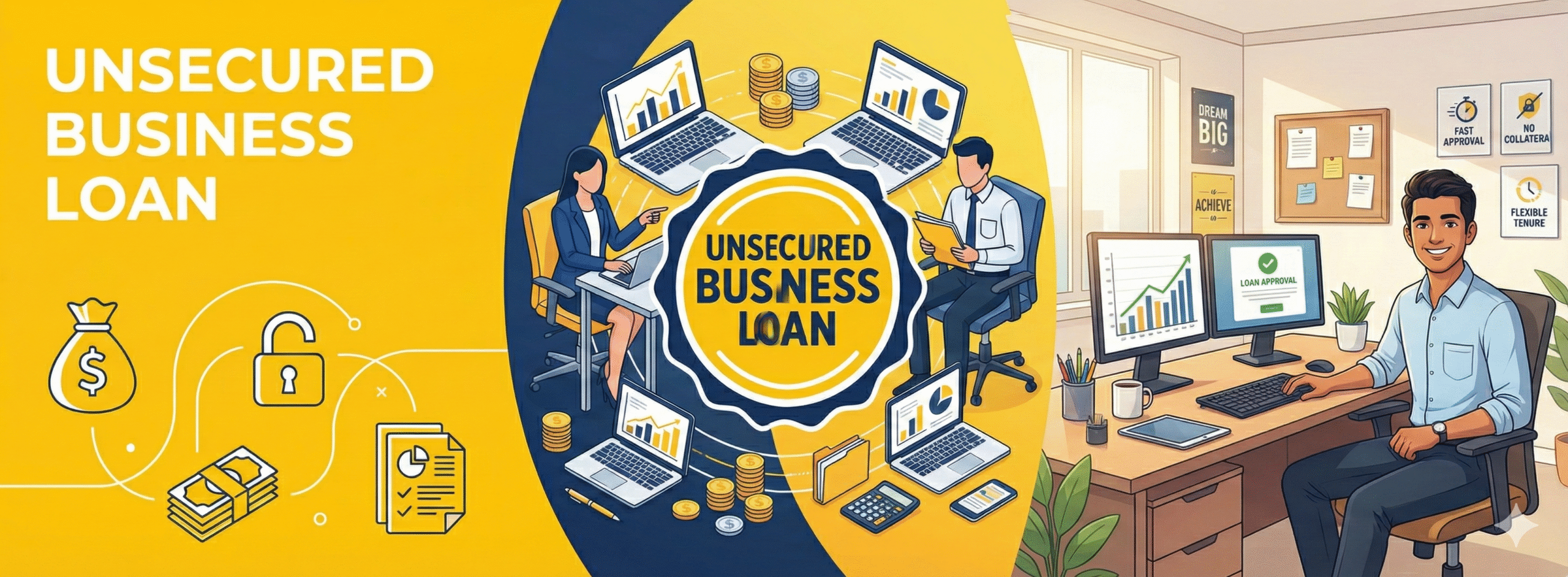 At Loan Wealth Advisor, we offer fast and hassle-free Unsecured Business Loans to help your business grow without any collateral. Get quick approval, minimal documentation, flexible repayment options, and the best interest rates through our trusted bank and NBFC partners.